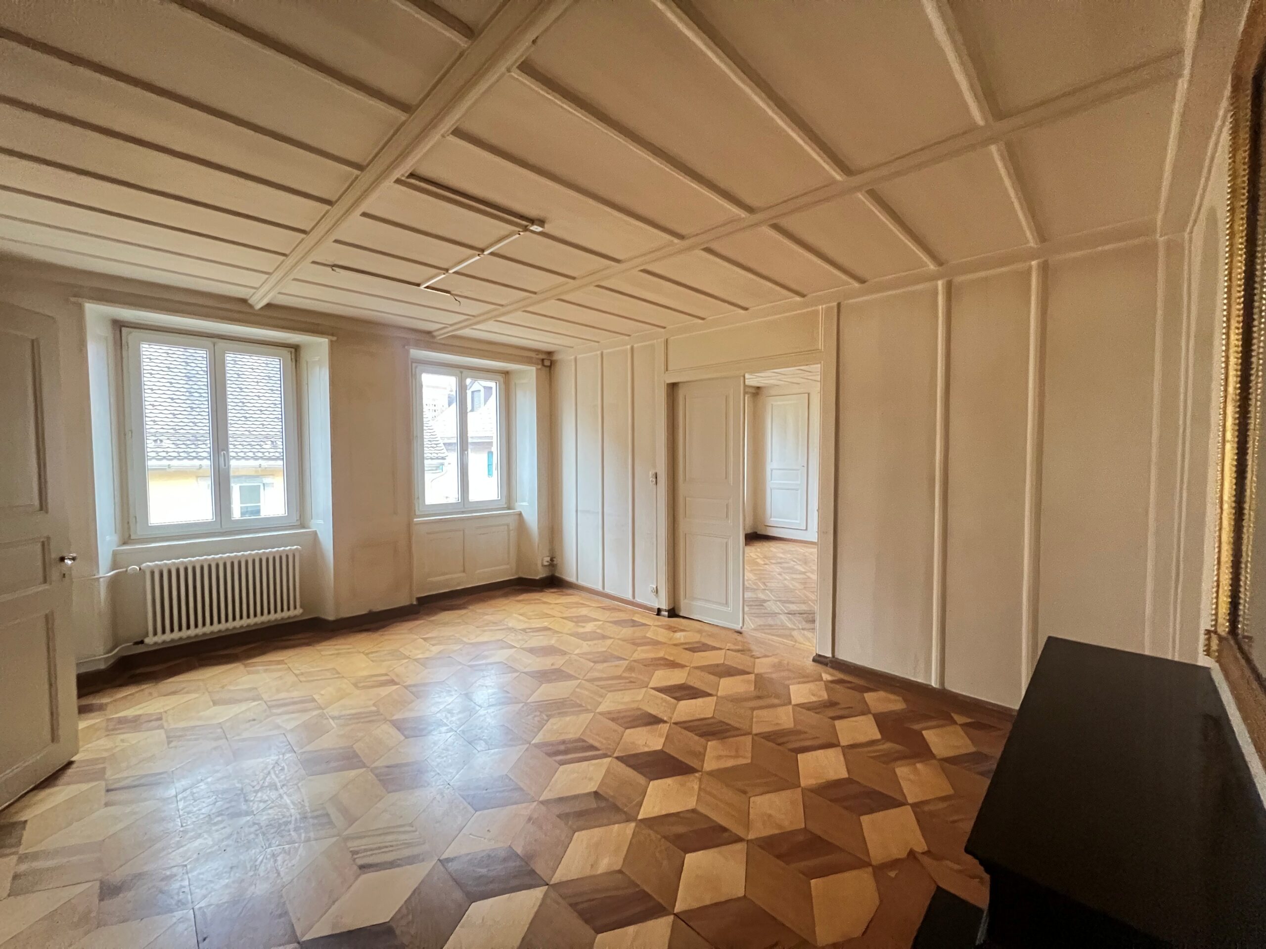 Bel appartement de charme de 5 pièces avec boiseries neuchâteloises et parquets d’origine, situé au centre du Locle, disposant d’une cuisine agencée, d’une salle-de-bain avec baignoire et d’un WC séparé. Accès a un jardin privatif.