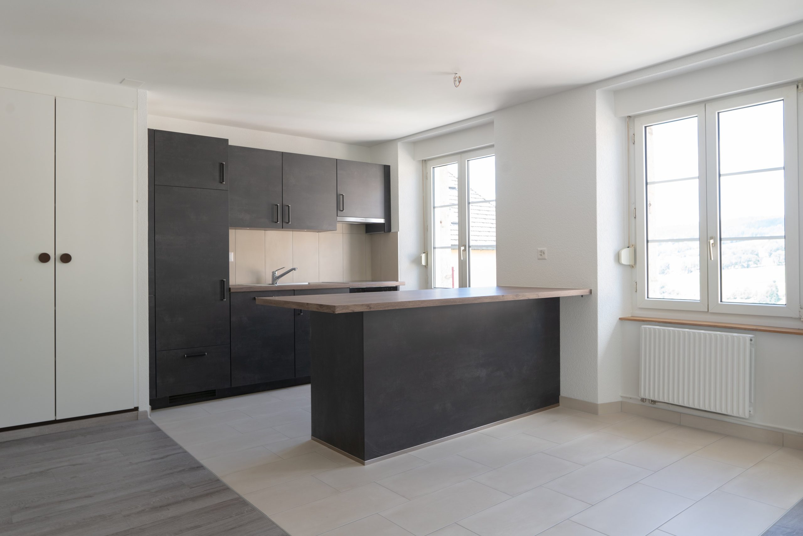 Appartement de 4 pièces lumineux et rénové complétement avec cuisine ouverte. situé au 1er étage d’un immeuble au cœur du village.