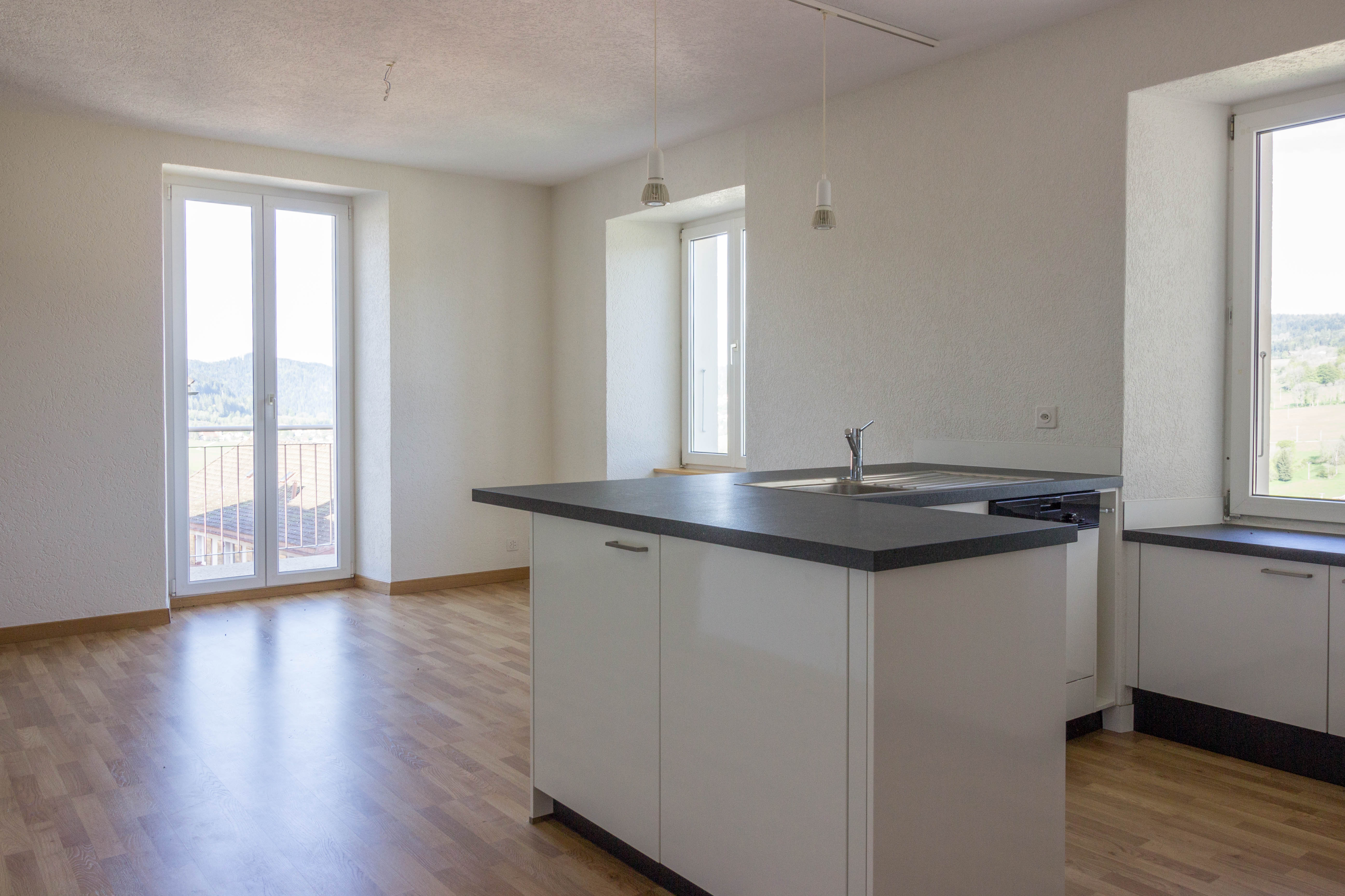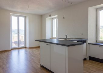 Cuisine agencée, avec électroménager MIELE, ouverte sur la salle à manger et le grand balcon offrant une vue imprenable sur le Doubs, salle a manger et séjour en enfilade, 3 chambres à coucher,  2 salles-de-bains avec baignoire, réduit sur le palier, jardin en commun, cave, buanderie et service de conciergerie.